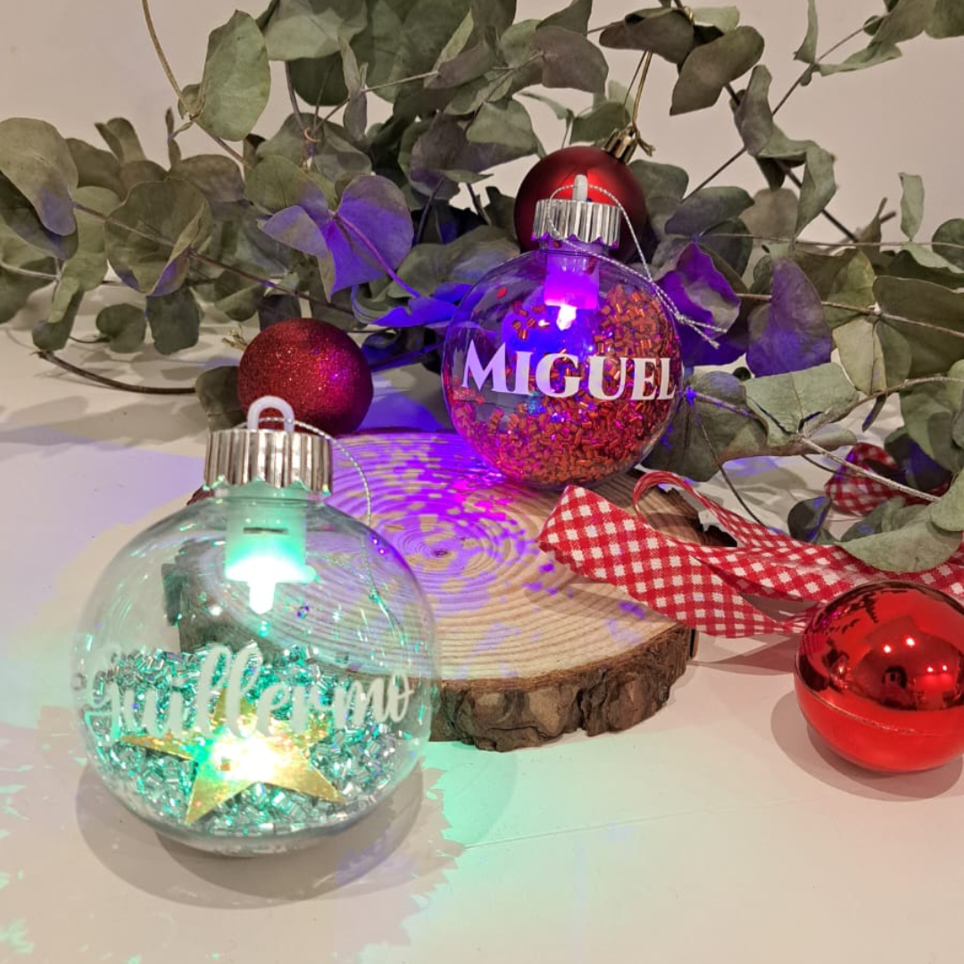 Nuestra bola de Navidad personalizada con luz es el adorno perfecto para llenar de magia tu árbol o sorprender con un detalle original.