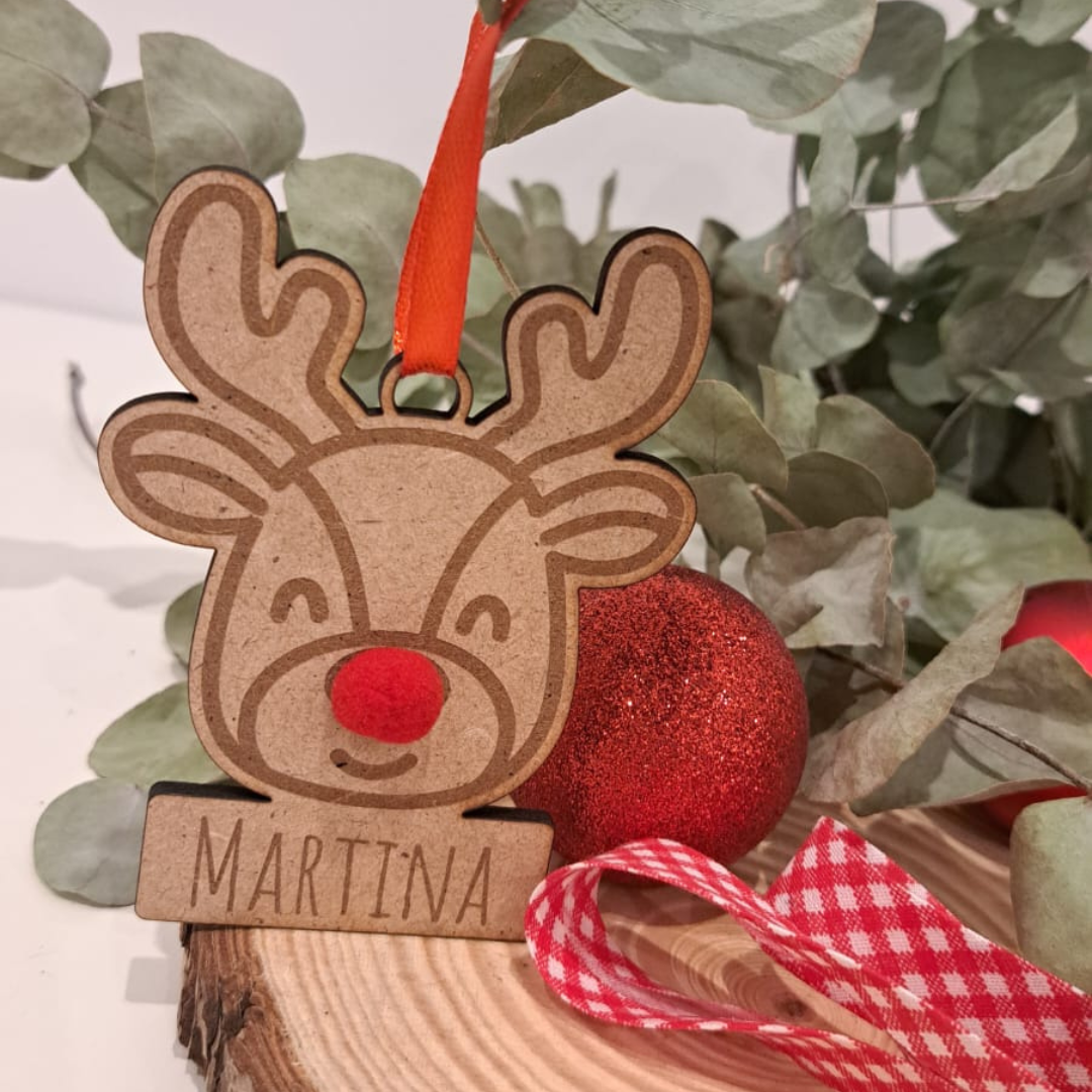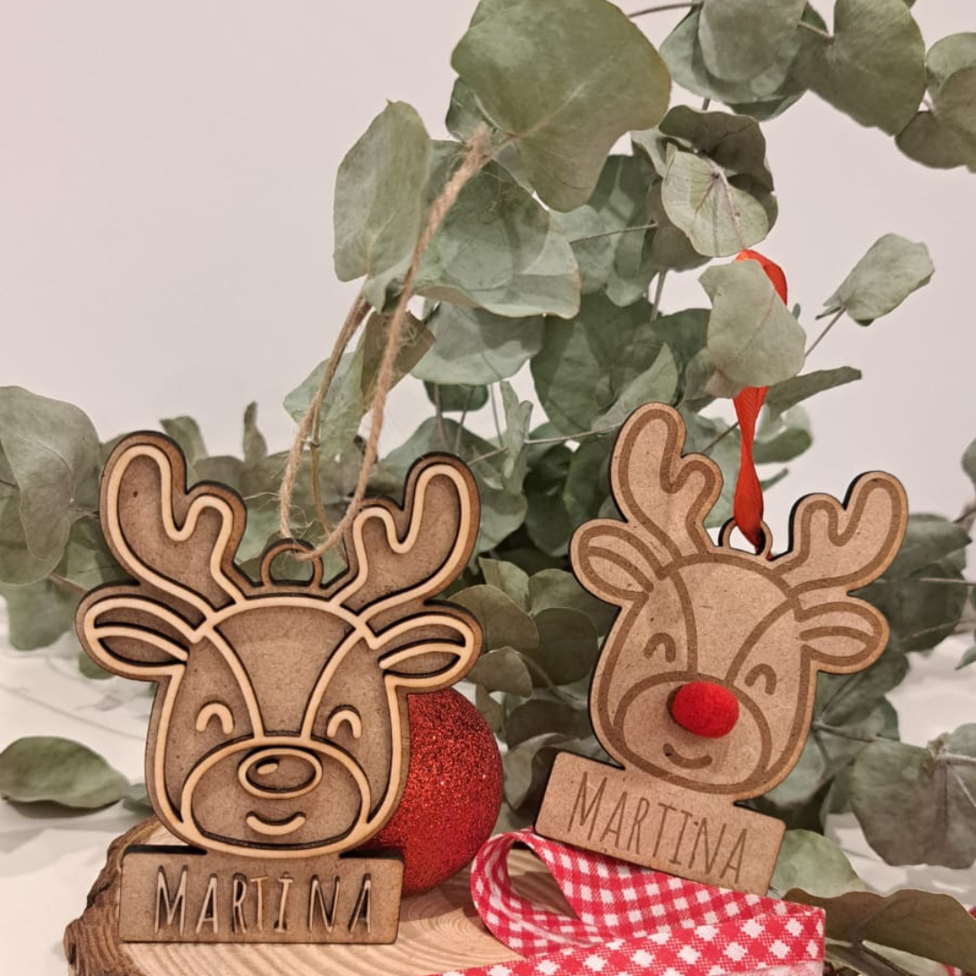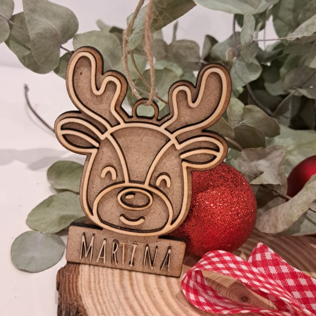 Nuestra bola reno de madera grabada y cortada a láser es un adorno navideño con un estilo natural, elegante y totalmente personalizable.