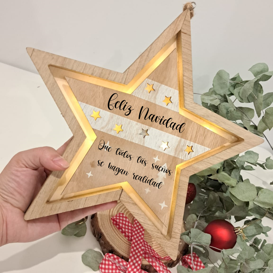 Nuestra estrella luminosa personalizada es el detalle perfecto para iluminar cualquier rincón con espíritu navideño.