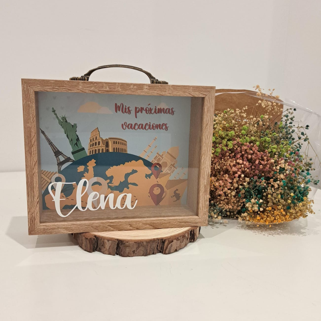 Nuestra hucha maleta personalizada es un detalle original y con mucho significado, ideal para quienes tienen un sueño o una meta por cumplir.